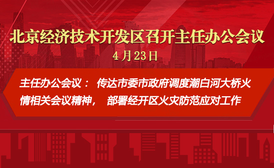 4月23日上午,工委副书记、管委会主任孔磊主持召开2025年第13次主任办公会,传达市委市政府调度潮白河大桥火情相关会议精神,部署经开区火灾防范应对工作,研究审议《北京经济技术开发区促进绿色低碳高质量发展若干措施》等事项。亦庄控股总经理杨文良列席。