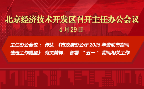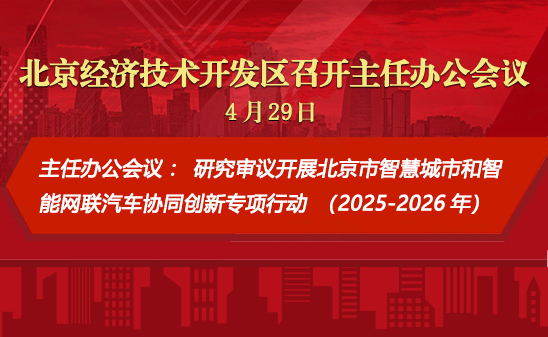 4月29日上午,工委副书记、管委会主任孔磊主持召开2025年第14次主任办公会,传达《市政府办公厅2025年劳动节期间值班工作提醒》有关精神,部署“五一”期间相关工作,研究审议开展北京市智慧城市和智能网联汽车协同创新专项行动(2025-2026 年)(以下简称“专项行动”)等事项。亦庄控股总经理杨文良列席。