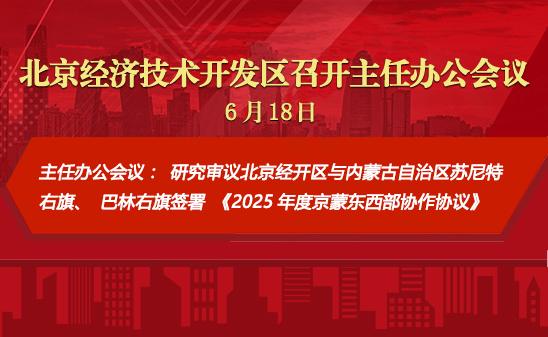 工委副书记、管委会主任孔磊近日主持召开北京经开区2025年第21次主任办公会,研究审议北京经开区与内蒙古自治区苏尼特右旗、巴林右旗签署《2025年度京蒙东西部协作协议》等相关事项。亦庄控股总经理杨文良列席。
