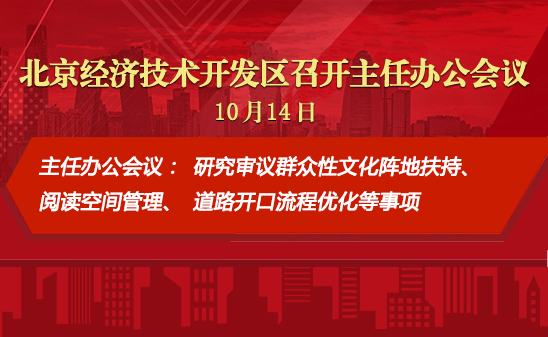 本报讯(融媒体中心 黄巧维)10月14日下午,工委副书记、管委会主任王磊主持召开北京经开区2025年第37次主任办公会,研究审议群众性文化阵地扶持、阅读空间管理、道路开口流程优化等事项。亦庄控股总经理杨文良列席。